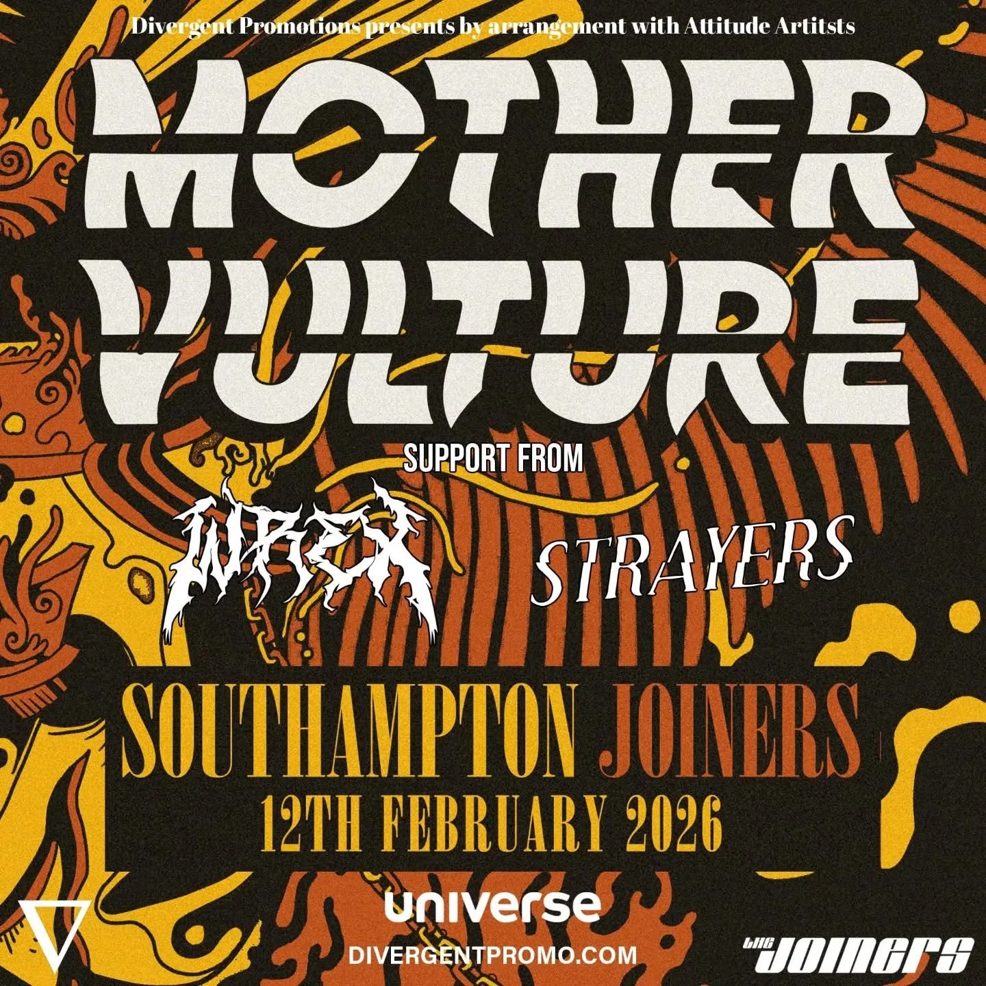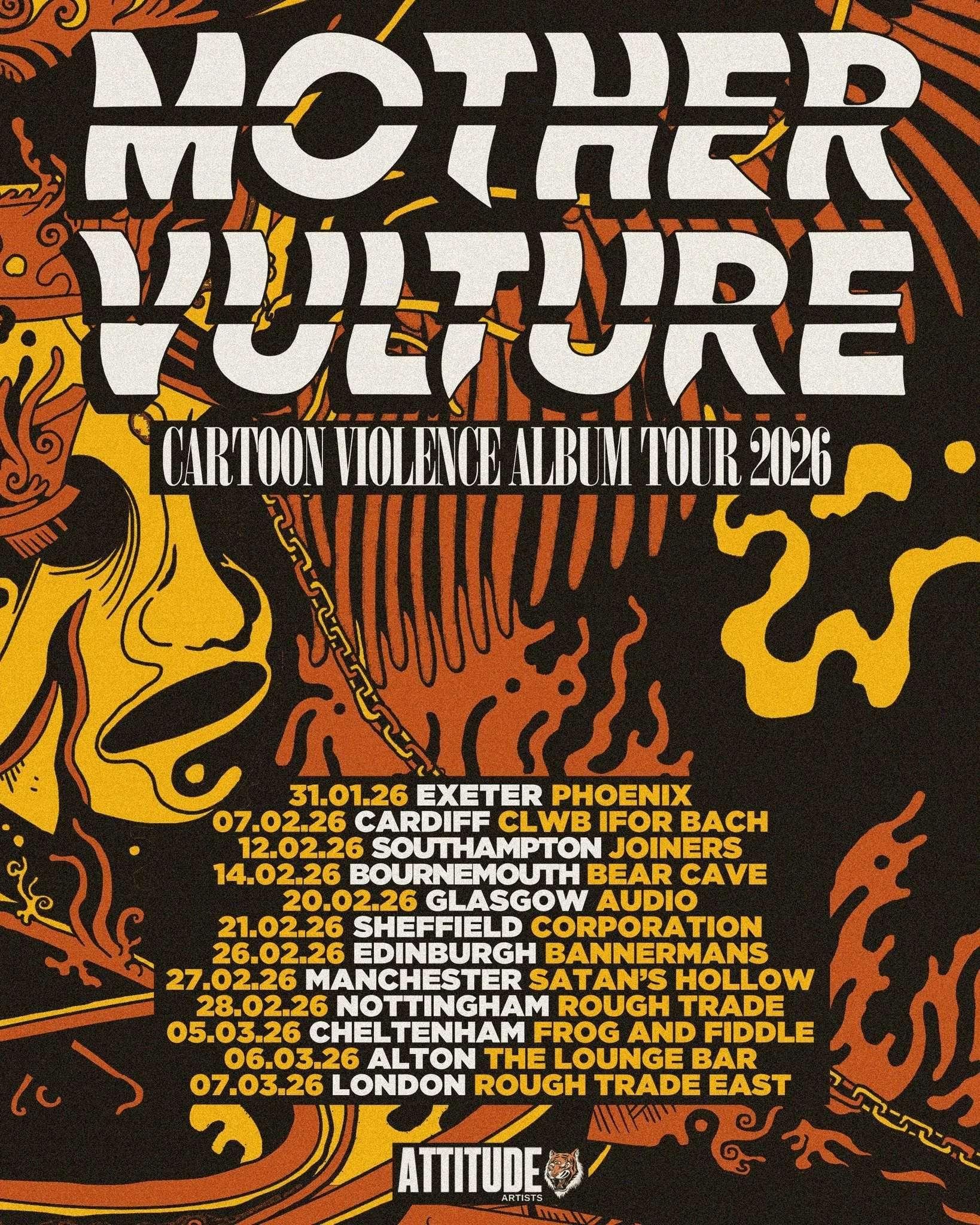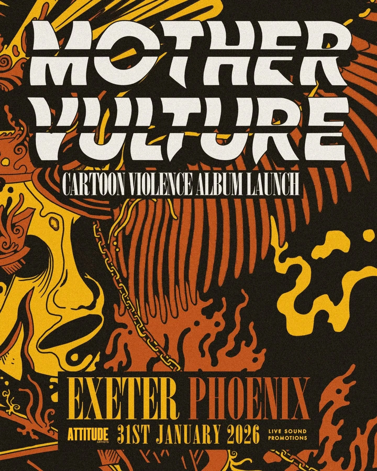 Mother Vulture have just finished a very successful European tour with Belgian fuzz-rockers Ramkot and a UK run supporting Norwegian Thrash outfit Bokassa and are due to release their sophomore record “Cartoon Violence” in January 2026. The band will headline the 450 capacity Phoenix in Exeter for the album launch in January 2026.