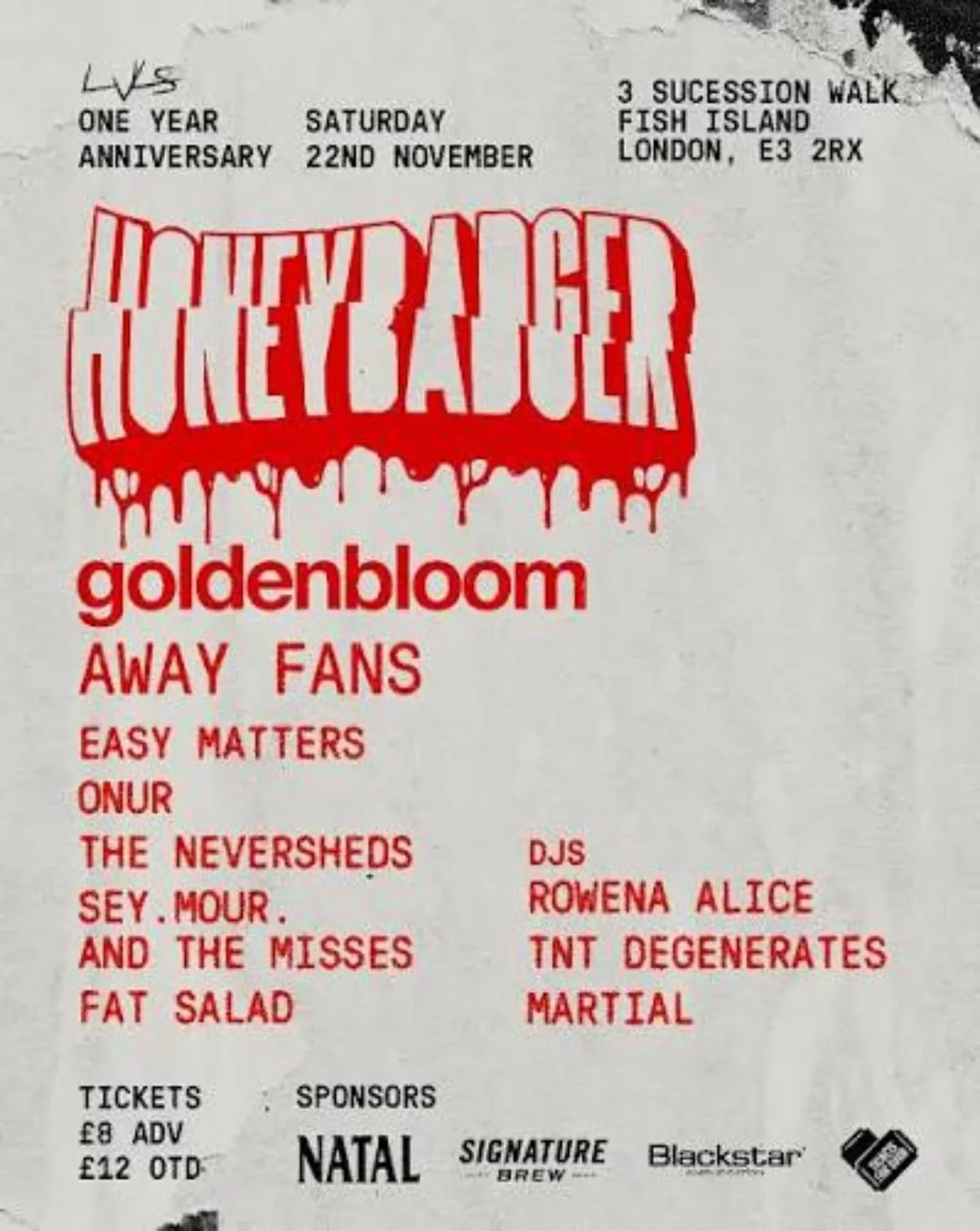 Formed in 2014 by brothers Joe and Eddy alongside school friend Luca, Honeybadger describe their sound as “spiky, gutter psychedelia” — a snarling mix of punk edge, grunge grit, and garage rock energy. Influenced by the likes of Demob Happy, Them Crooked Vultures, Frank Carter and Queens Of The Stoneage the band has become known for their raw intensity and chaotic live shows.